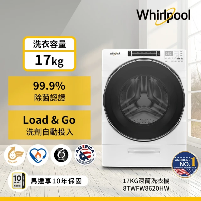 【Whirlpool 惠而浦】10.5公斤Essential Clean洗脫烘變頻滾筒洗衣機(WWEB10701BW) 賣場網址: